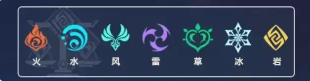 注意:草元素不与冰风岩任何单元素反应,但当草元素与三者元素其中之一共存时,其他元素会先与该元素反应