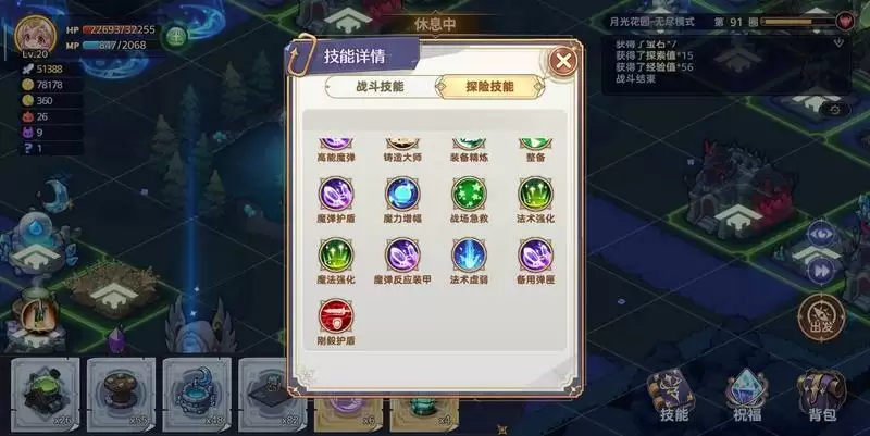 主技能:霰弹(此处请划重点)+加特林/浮游炮(小怪浮游炮,boss换加特林。别问,问就是浮游炮有bug)+魔弹上膛+唤灵+掌控者,其他都选被动技,生存优先(如10%减伤、10%生命)。技能图片仅供参考: