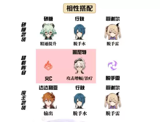 也可替换成香菱,双火共鸣攻击力加成加上香菱也有优秀的脱手大招,可以配合频繁打超载,但是需要注意小型敌人会被炸飞,输出环境或许会不太好