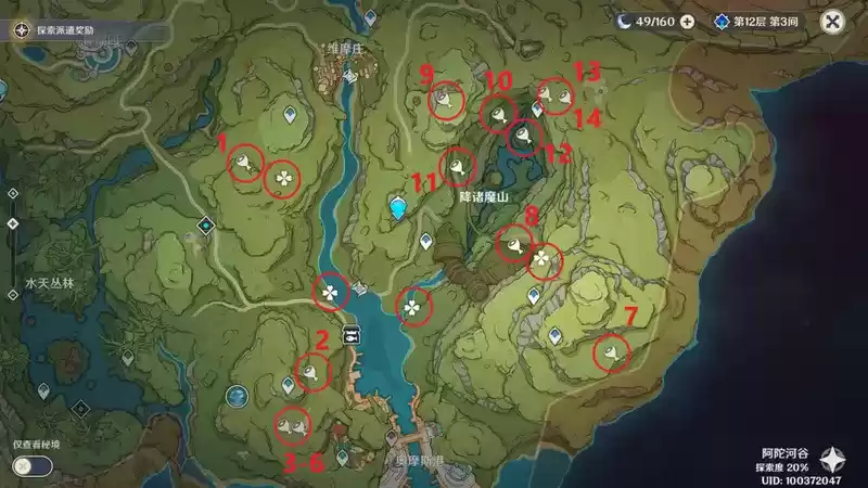 图中标记了14个能量块,其中1,7,8,9这四个不建议去拿,拿10个就够用了)