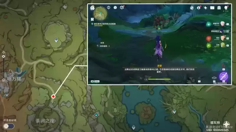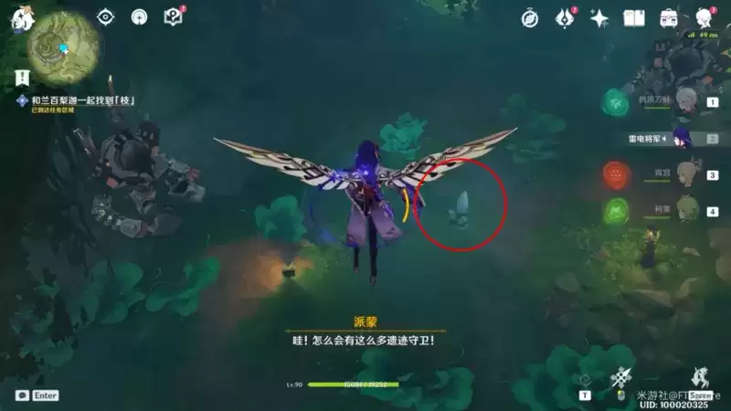 任务触发位置如下图所示,到达之后可以看到一个兰那罗轻轻松松一击就打败了遗迹守卫,它就是我们要找的兰百梨迦。