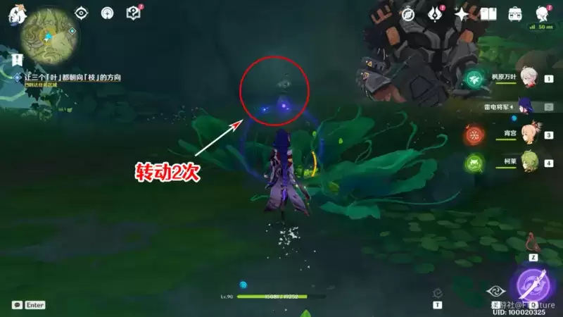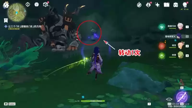 3个叶全部转至朝向枝后,周围的两个遗迹重击就会苏醒,我们赶快和兰百梨迦一起将它解决掉吧。