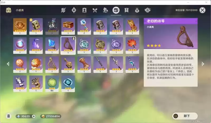 然后装备上道具【老旧的诗琴】,演奏乐曲