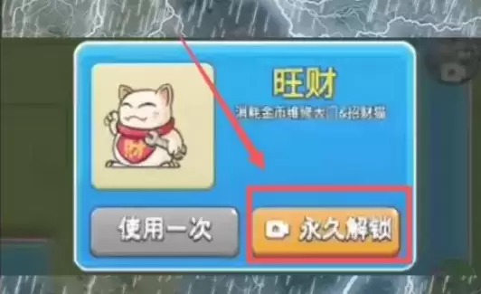 找到猫窝,获得招财猫皮肤,点击永久解锁即可。