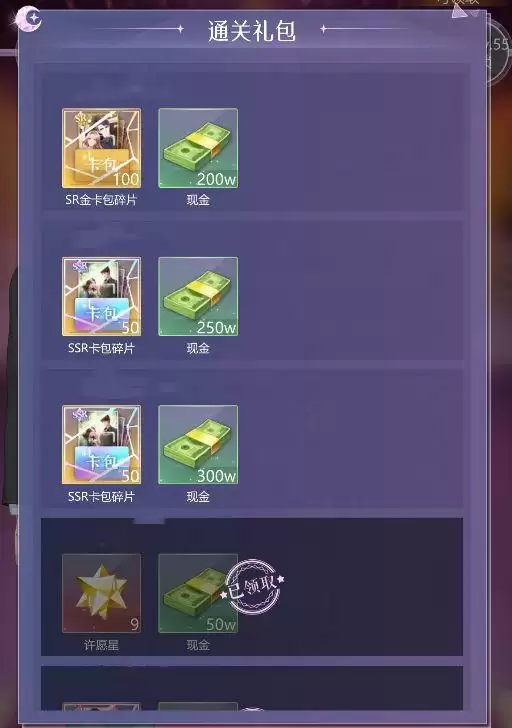挑战一定数量的对手后,还会有通关礼包呢,通关礼包内还有ssr卡包碎片和现金奖励!
