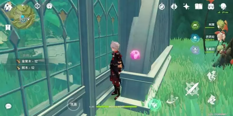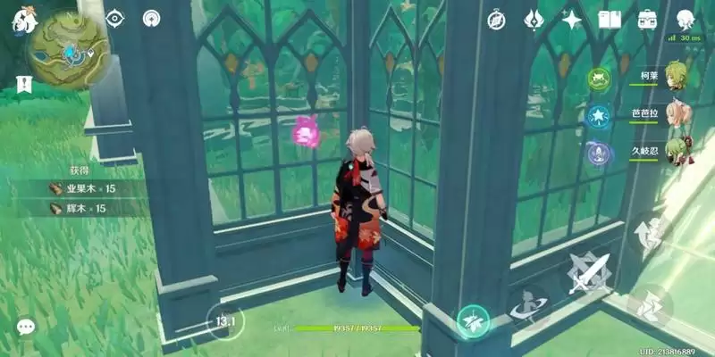 先来到传送点,来到禅那院玻璃房子处,开始砍树,获得业果木*12、辉木*12(站在角落口,太外面的话可能都只砍9个)