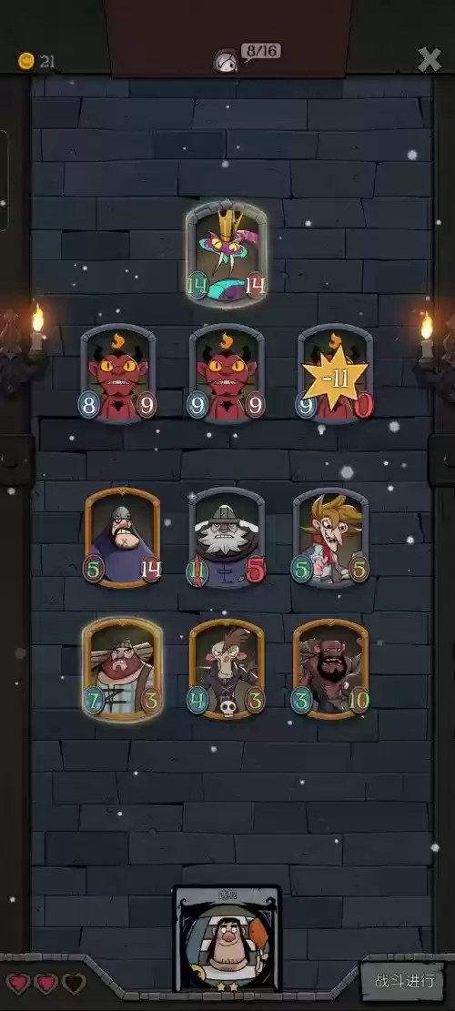 在游戏的最开始,玩家会获得一些基础卡牌,游戏界面上将会有三个随机选项供玩家选择,有战斗,卡牌获取,增益事件和随机事件等几类。游戏过程中,玩家通过战斗升级解锁更多的手牌上限和抽牌上限以及角色的职业技能,无论升级还是随机事件都有机会获得新的卡牌和增益效果。数百张卡牌给了玩家足够多的策略选择空间,根据自己的职业和对手进行卡牌库的搭建。