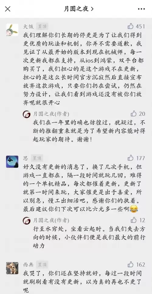 即使游戏得到了玩家和市场的认可,滴答工作室仍然保持着这种低姿态,耐心倾听玩家们的声音,以工匠精神一点点地打磨游戏,用心地维护着这一IP的经久不衰,前文所提到的600余天的打磨过程以及小木匠致玩家的信是最好的证明。