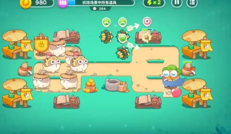 《保卫萝卜4》梁波波与祝秋秋第90关高分速通攻略!本关地图中央水域面积较大,挑战性十足。以下步骤将助您轻松通关:《保卫萝卜4》梁波波与祝秋秋全关卡攻略合集通关技巧:开局策略:在左上