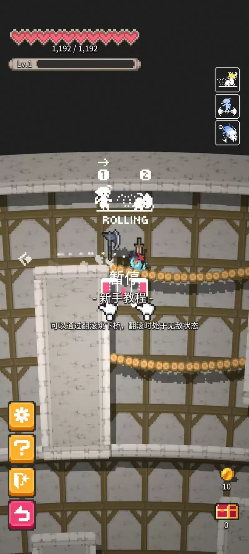 极速下降:会改变下落时间以及下落后翻滚的高度判定,具体为跳跃后再次点击会快速下坠,且在大于等于一格(标准同上)后极速下降会衔接翻滚,既判定为无敌时间,习惯二段跳之后极速下降操作起来就会很难受,但更为宽松的落地翻滚可以避免更多的伤害。
