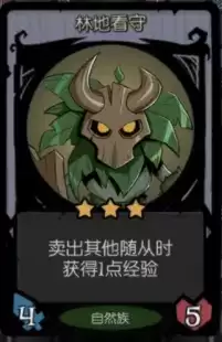②林地看守:加经验的卡牌,在我们最后几回合如果经验差的不多可以卖卡换经验,在中期换阵容的时候也可以先上这个卡牌然后再卖卡获得经验。