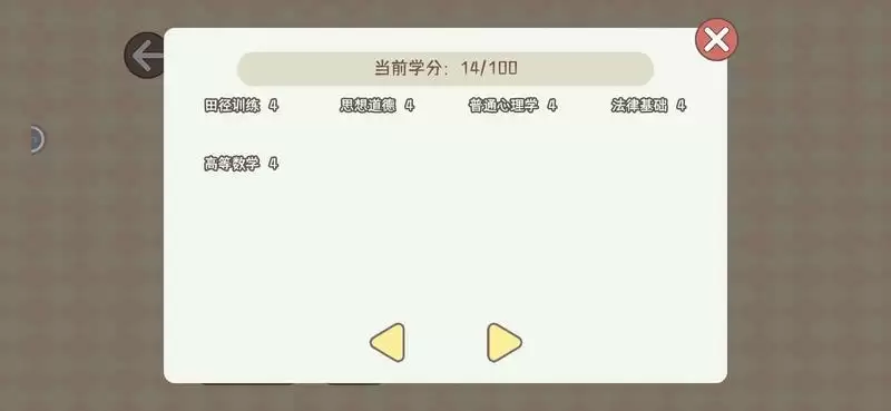 属性栏里的课程,看一下当前学分就行,下面的东西…只有科目是对的,学分无论什么课,无论实际学分多少,都显示的4