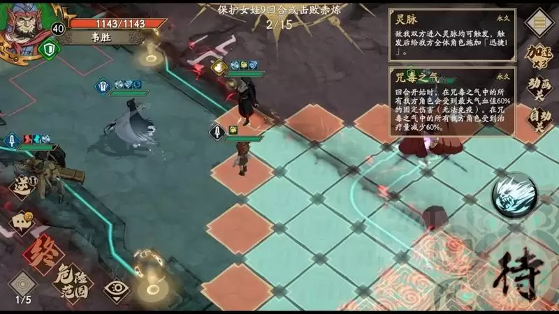 第四回合赤炼出现时,炮灰正好能走到地图最右下角,若此回合大部队离赤炼足够远,赤炼和三只敢死鸟都会去找炮灰,且这一回合赤炼正好差一格打到炮灰。