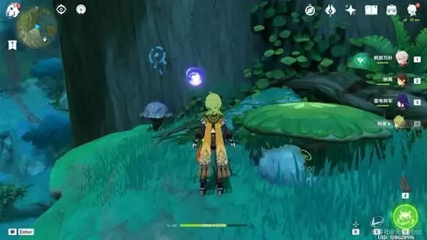 随后利用草种子击碎石块,我们会拿到一个奇馈宝箱,随后利用草元素激活蘑菇印记。