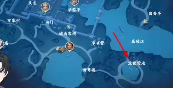 2、和张翰对话后领取拿盗轶事以后,我们需要前往嘉陵江下图位置。