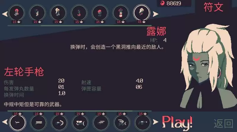 1、露娜这个角色技能较难操控,不注意容易扣血,过15关和大部分角色一样,靠走位,黑洞无法限制冲撞boss,但可以限制大部分boss行动。符文默认,可将进攻第二行符文换为余震(防近身)