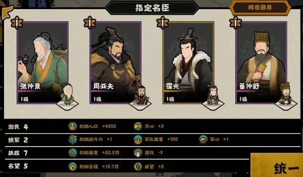 第二个便是以周亚夫和霍光和核心的低腐化阵容,董仲舒的【天人三策】使用上限也是极高的,当然民生位和贤者位也可以调换为更为合适的低腐化阵容,以发挥最大功效。