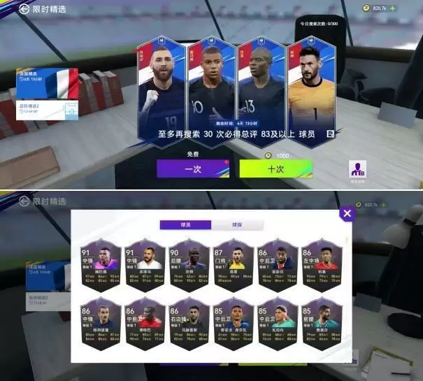【法国精选】限时经纪人明日开放!消耗TF币搜索球员,你将有机会获得顶级法国球员姆巴佩、本泽马、坎特、洛里。除此之外,你还可以获得其他明星球员。不要错过这个补强球队的难得机会!