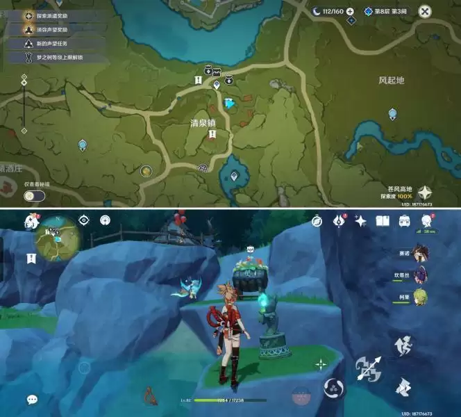 来到清泉镇传送点西北侧,前往如图位置,在舞台后取得宝箱一。