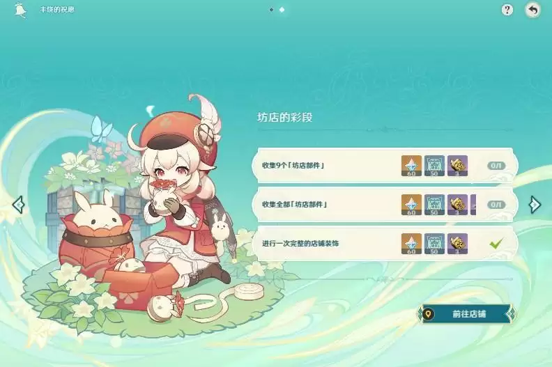 v3.1活动杯中遥吟之歌在国庆节当天开启「丰饶的祝愿」,活动可根据留言中的线索寻找到藏匿的「丰饶之箱」,获得居民们的节日祝福以及赠礼,赠礼中包含了活动特定的装饰品「坊间部件」,可用来装饰义卖活动的店铺以及相应奖励