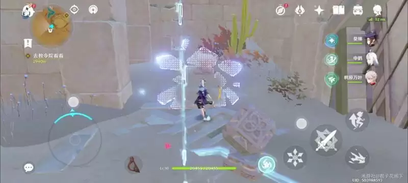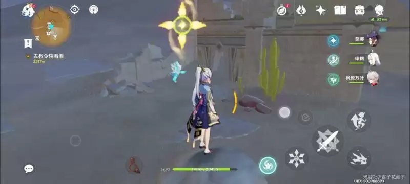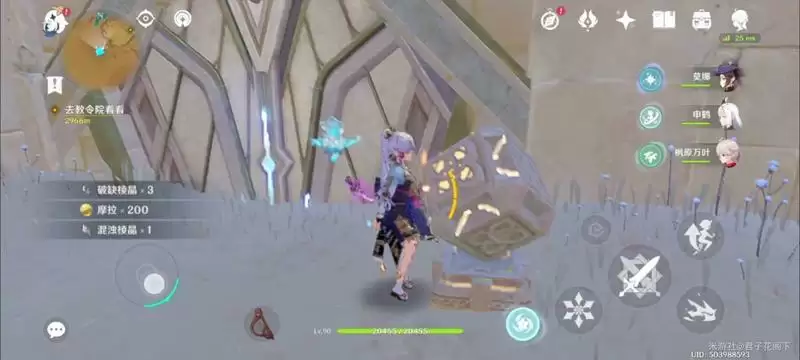 进入之后,旋转视角,可以看到一个摩拉堆,走过来