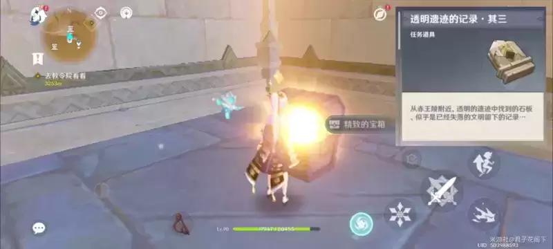 看到一个精致宝箱,开启得到【透明的遗迹记录·其三】