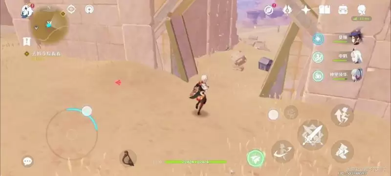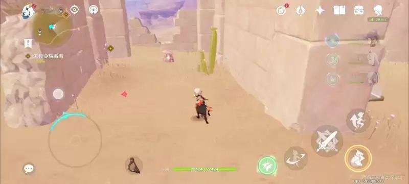 从沙漠北部遗迹一路来到遗迹门口,在遗迹的北边的四叶草对应的石头上看下去,在我们的左边有一个入口