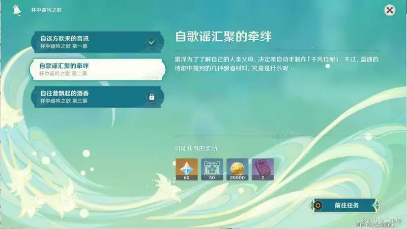 完成任务「杯中遥吟之歌·第一幕·自远方吹来的音讯」
