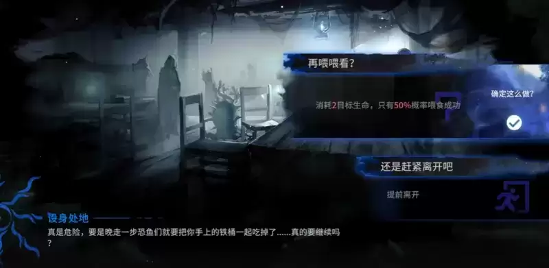 在第一次喂食后,玩家可以选择【再喂喂看?】,同样消耗2目标生命,但是这次只有50%概率成功,失败的话就是直接消耗2目标生命后直接离开。