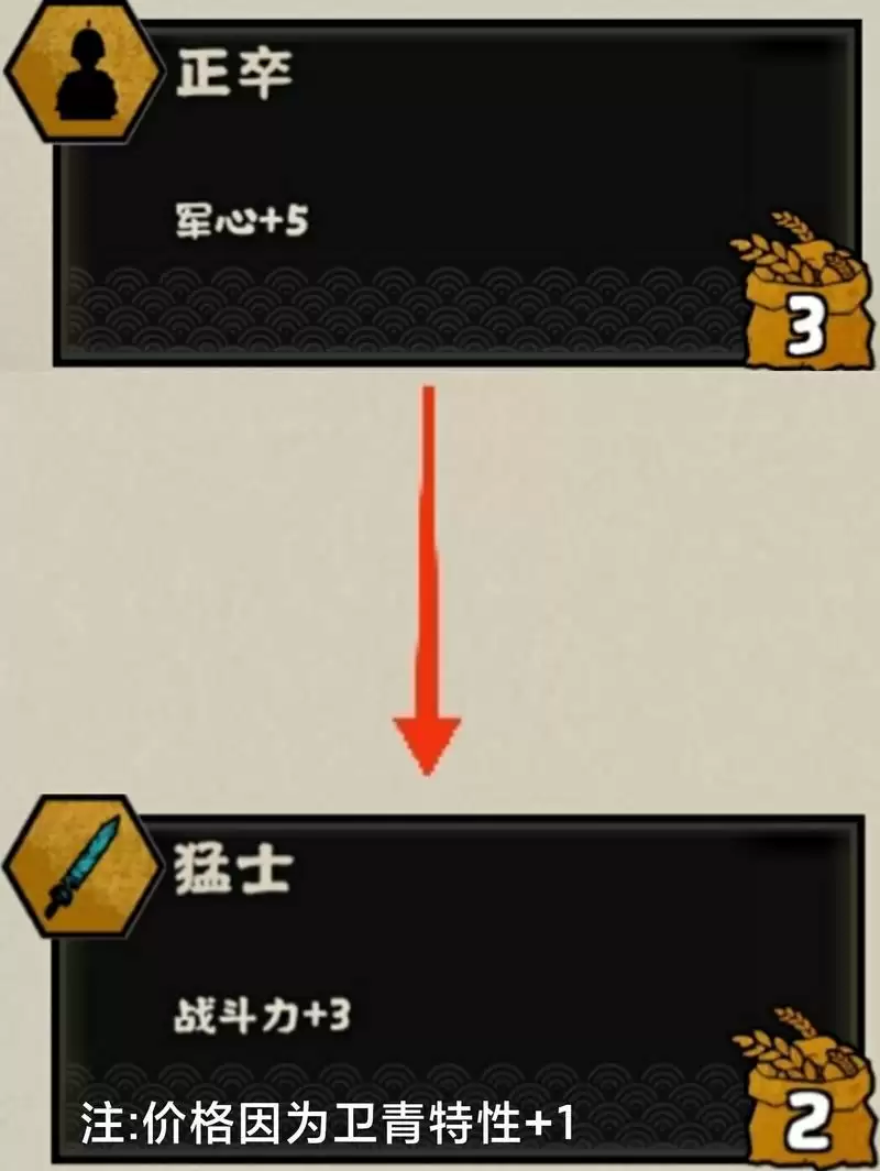卫青的特性越多次触发效果越好,所以要点消耗低的政策,比如:议事右下角固定刷新的卡牌,还有加军心的政策,并且,其中一个加军心的政策正卒,还有解锁性价比超高的猛士(也就是韩信北伐的齐心和长平之战的重刑尚武)