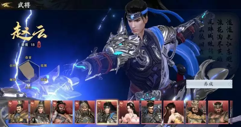 最后出场的就是我们的赵子龙同学~赵云作为前期必备的武将之一,其灵活的身法,高额的伤害搭配2秒的眩晕技能,无论是主线剧情,还是其他场合的战斗,都可游刃有余。