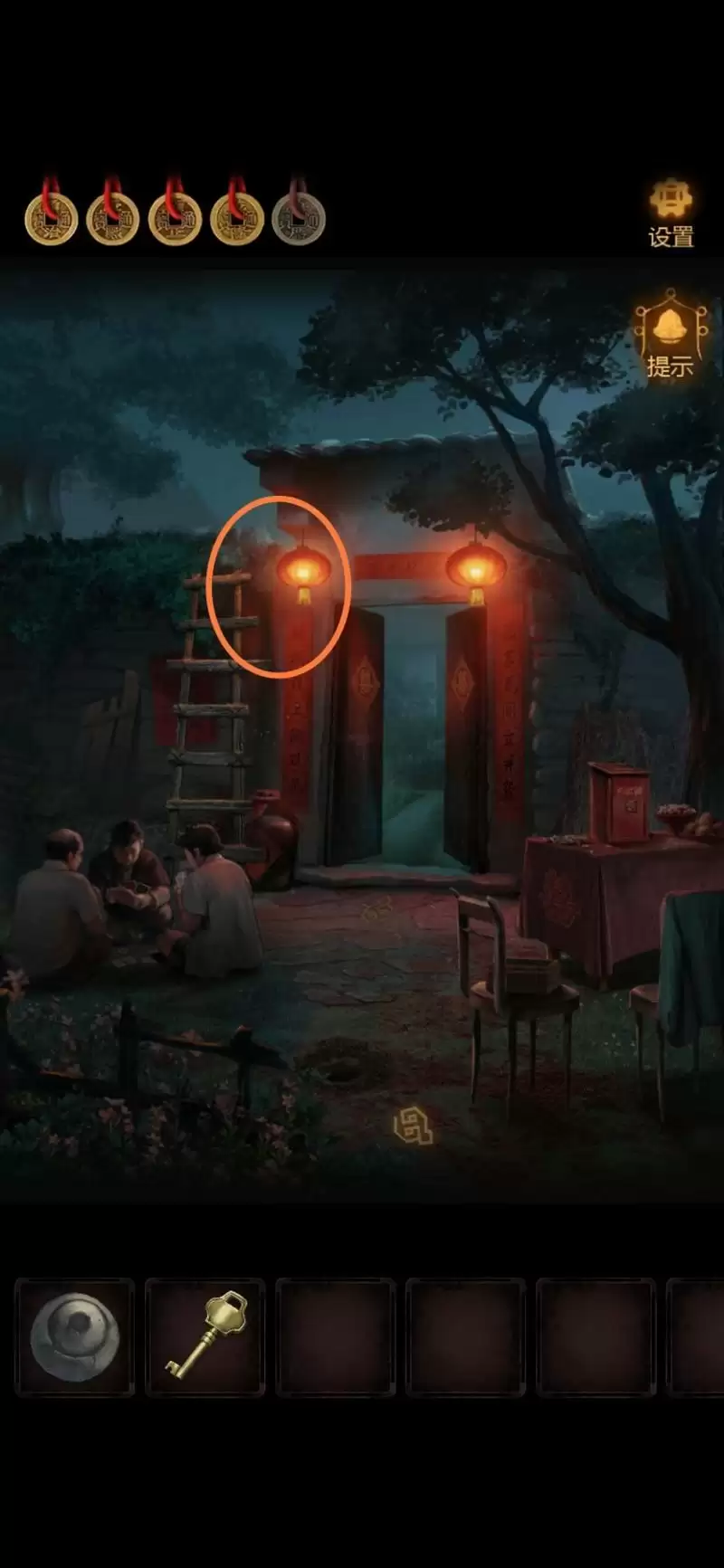 修好扛着梯子到外面外墙上,就是之前梯子所在的地方 ,爬上去把灯笼里的【钥匙】拿出来。