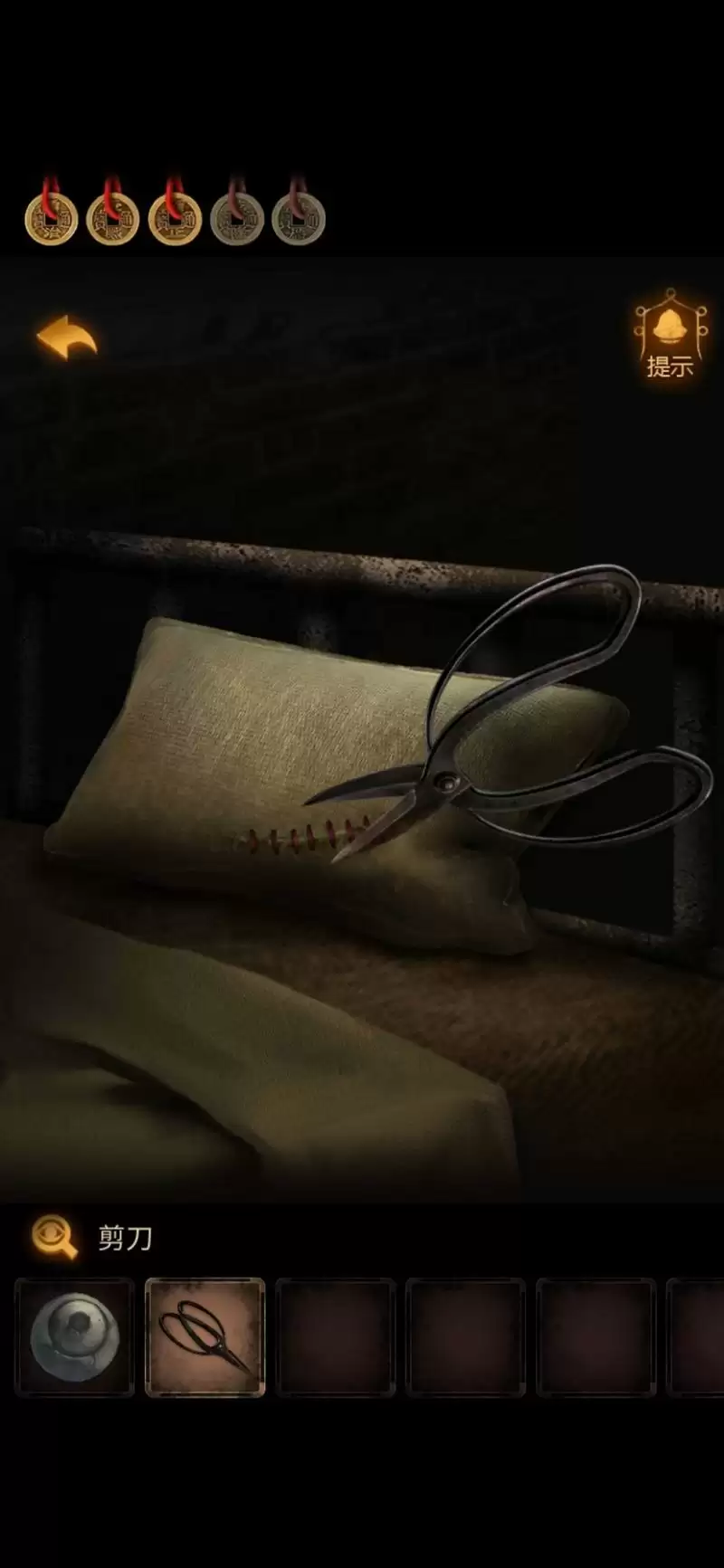 回想之前发现的四个线索,输入密码,获得【剪刀】。
