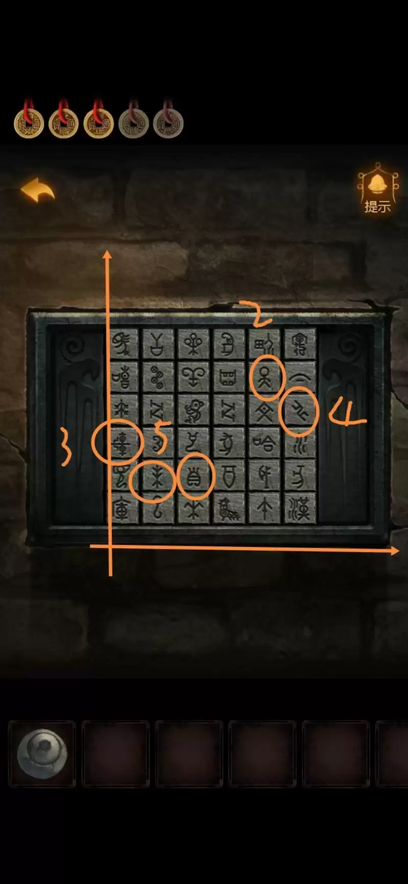 盒子上第一个符号是固定的,对照到线索板上,难道说!纸条上的数字是坐标(左下角为原点)。
