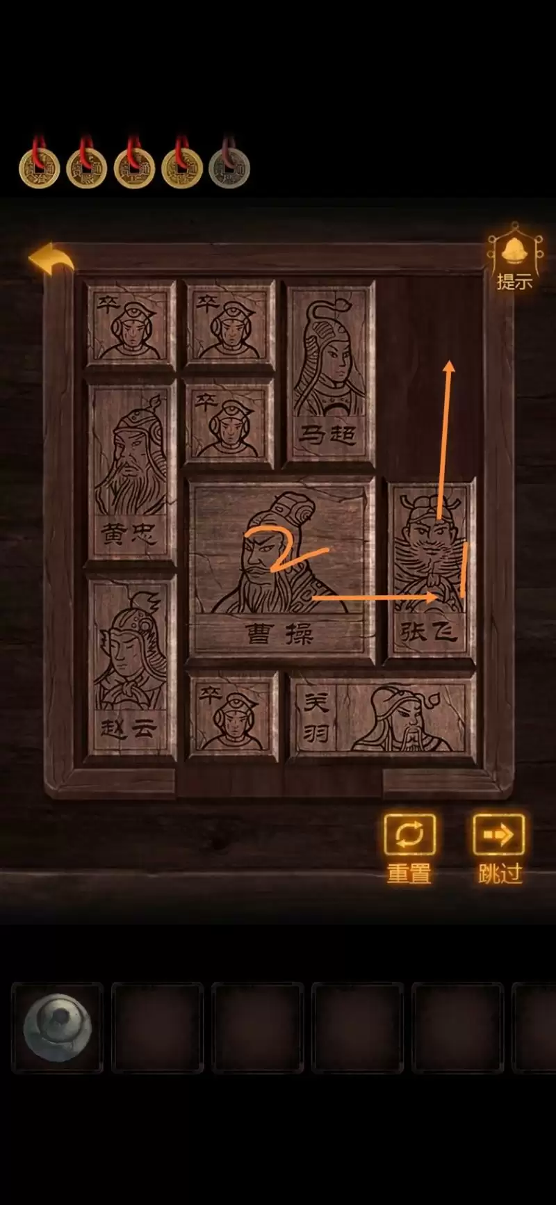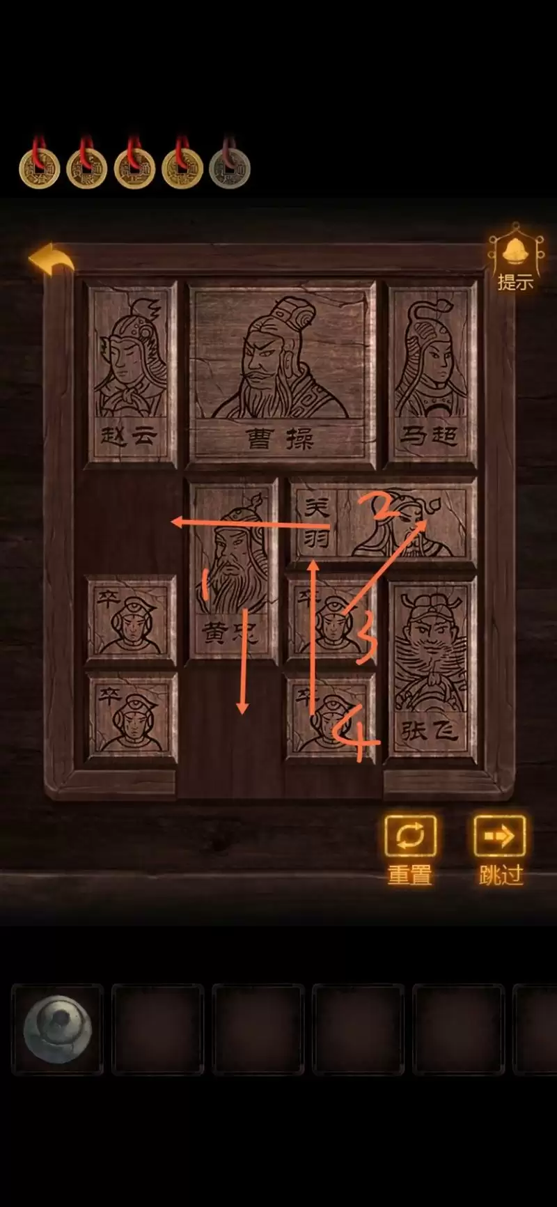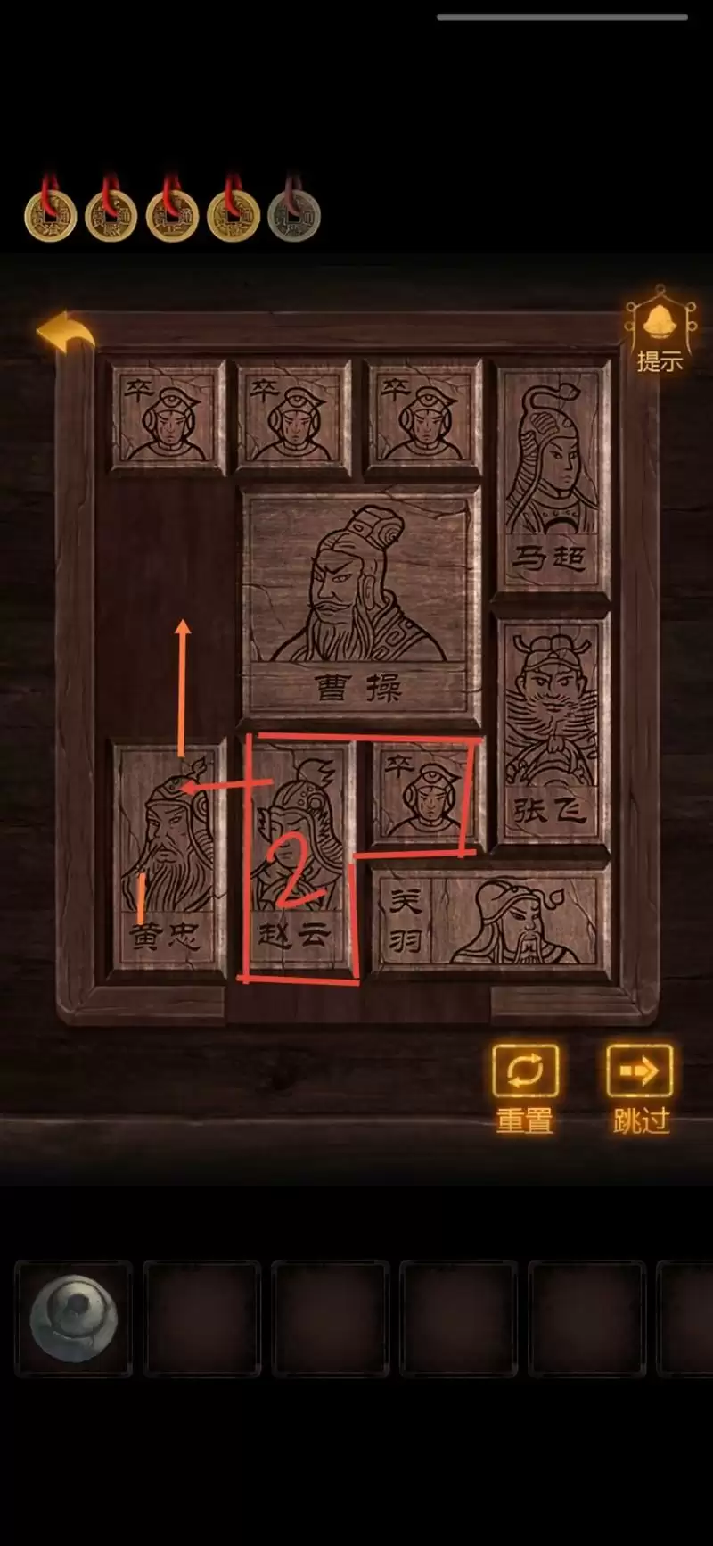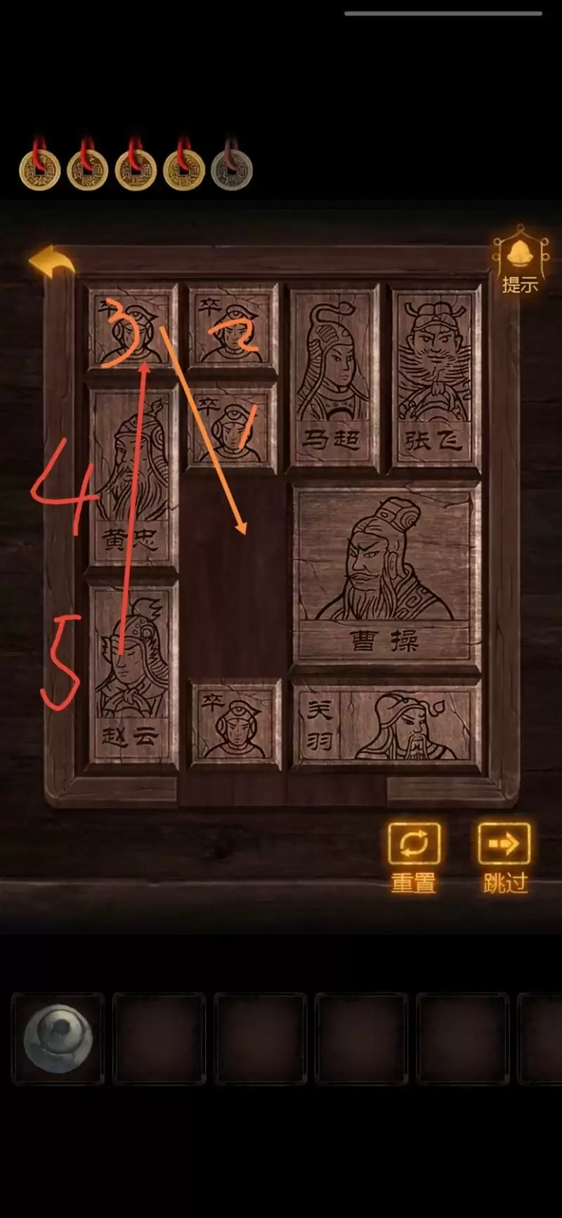 完成红桌上的华容道,获得【毛笔】。