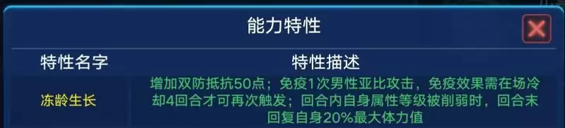 ⑵能力特性:冻龄生长(有时候会带水泡特性,免疫嘲讽)