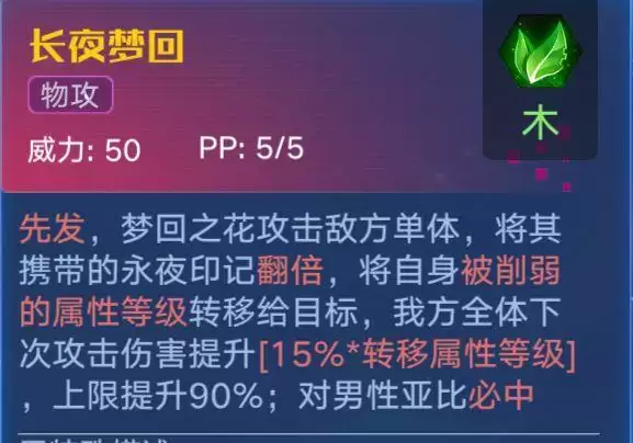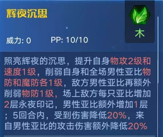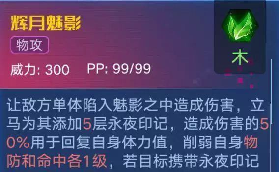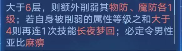 ①每用一次二技能,就会给对面全体挂上2层永夜印记。如果对面是男亚比,会额外增加一层,也是3层