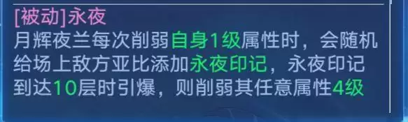 ②夜兰自己每削弱1级自己属性,会随机给一个目标加1层永夜印记。(别人削弱夜兰不会加印记)