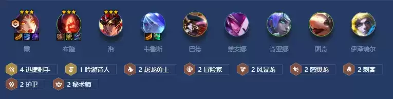 阵容优势就是全面琪亚娜和维鲁斯包括洛的控制可以让我们的输出环境非常好,2个刺客跳后排拉扯可以让我们的射手羁绊最大化攻速加成,比较怕神装的金龙土龙,如果场上没有狮子狗的话可以把夜之锋刃换成轻语。