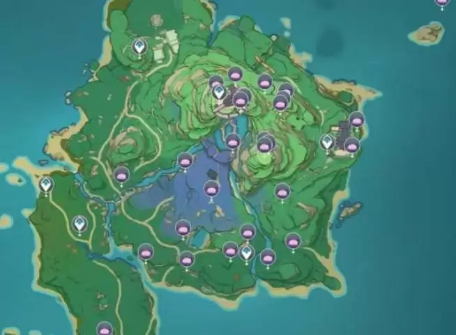 4、总体而言,稻妻地图里的绯樱绣球还是比较多的,主要集中在右边的那个岛屿这里。
