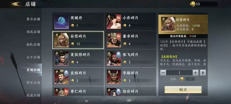 3.孙坚,招募商店兑换碎片,一周限10片。也就是说要每周120抽,12周可兑换出。获取方式中也有列传获取途径。