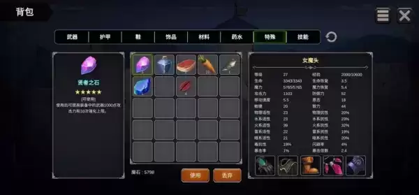 无人岛刷水属性药水,底下迷宫刷火属性药水,用来学习技能,属性适性20可以学。