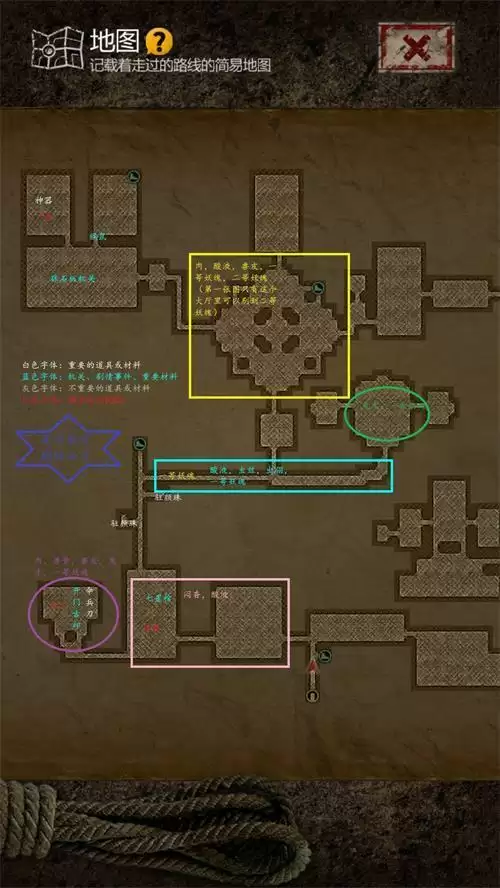 如果中途休息,一定要买到路线图去挂机探索,商人处优先买火油,盐,朱砂,基础材料后面的话会越来越富余。
