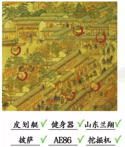 《汉字找茬王》是抖音上目前很火的精彩益智烧脑解谜闯关游戏,游戏中古画找茬8是一个找图关卡,需要在古代画中找出现代物品,答案是皮划艇、健身器、山东兰翔、披萨、AE86、挖掘机。大家要仔细观察,下面是小编给大家带来的《汉字找茬王》古画找茬8通关攻略,感兴趣的小伙伴们一起来看看吧。