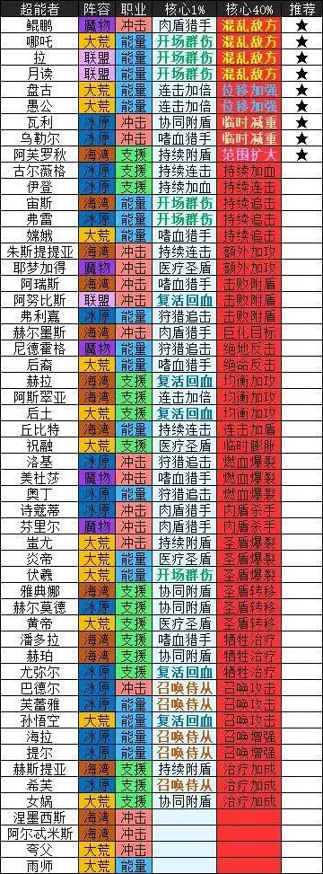其中标记为“推荐”的是可以优先升至热寂,然后通过UP池获取或者商店直接花费5200钻石购买来提取核心的(鲲鹏、拉、月读除外,因为它们是联盟和魔物,10000钻石太贵了)