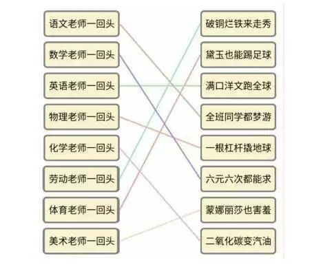 1、这一关是将各科老师的回眸和回眸效果正确连线