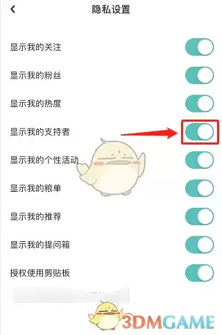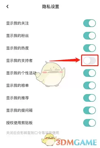 4、看到【显示我的支持者】右侧的开关为关闭状态,即为设置完成。