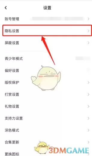 2、进入设置界面后,选择如图的【隐私设置】选项