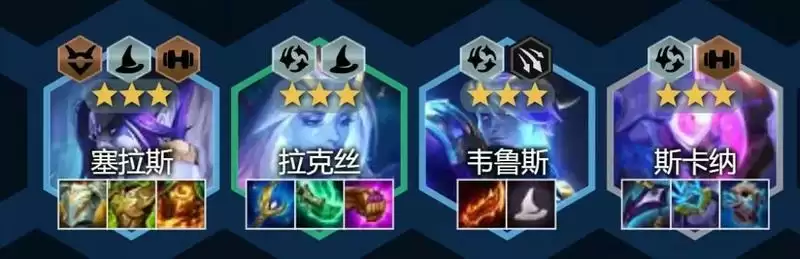 这套阵容主要输出就是拉克丝。其3星技能高法系输出装备下伤害极高,定向打最远的敌人,站位更容易针对敌方棋子,还可造成范围群伤。另一方面在法师羁绊下双重释法,3星拉克丝2次技能可直接清理掉敌方脆皮棋子。
