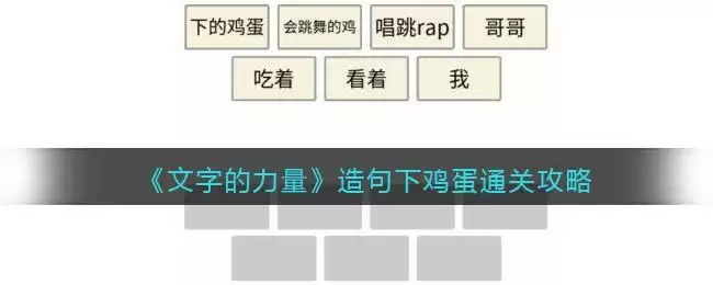 文字的力量是抖音上目前很火的精彩益智烧脑解谜闯关游戏,游戏中造句下鸡蛋怎么过?这一关是一个造句关卡,今天小编就给大家带来了抖音小游戏《文字的力量》造句下鸡蛋通关攻略详解,希望对大家有帮助哦!